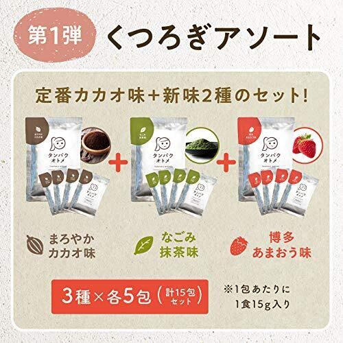 タマチャンショップ タンパクオトメ どこでもプロテインセット くつろぎアソート シェイカー付き 分包タイプ(3種×各5包)※1包あたり15g