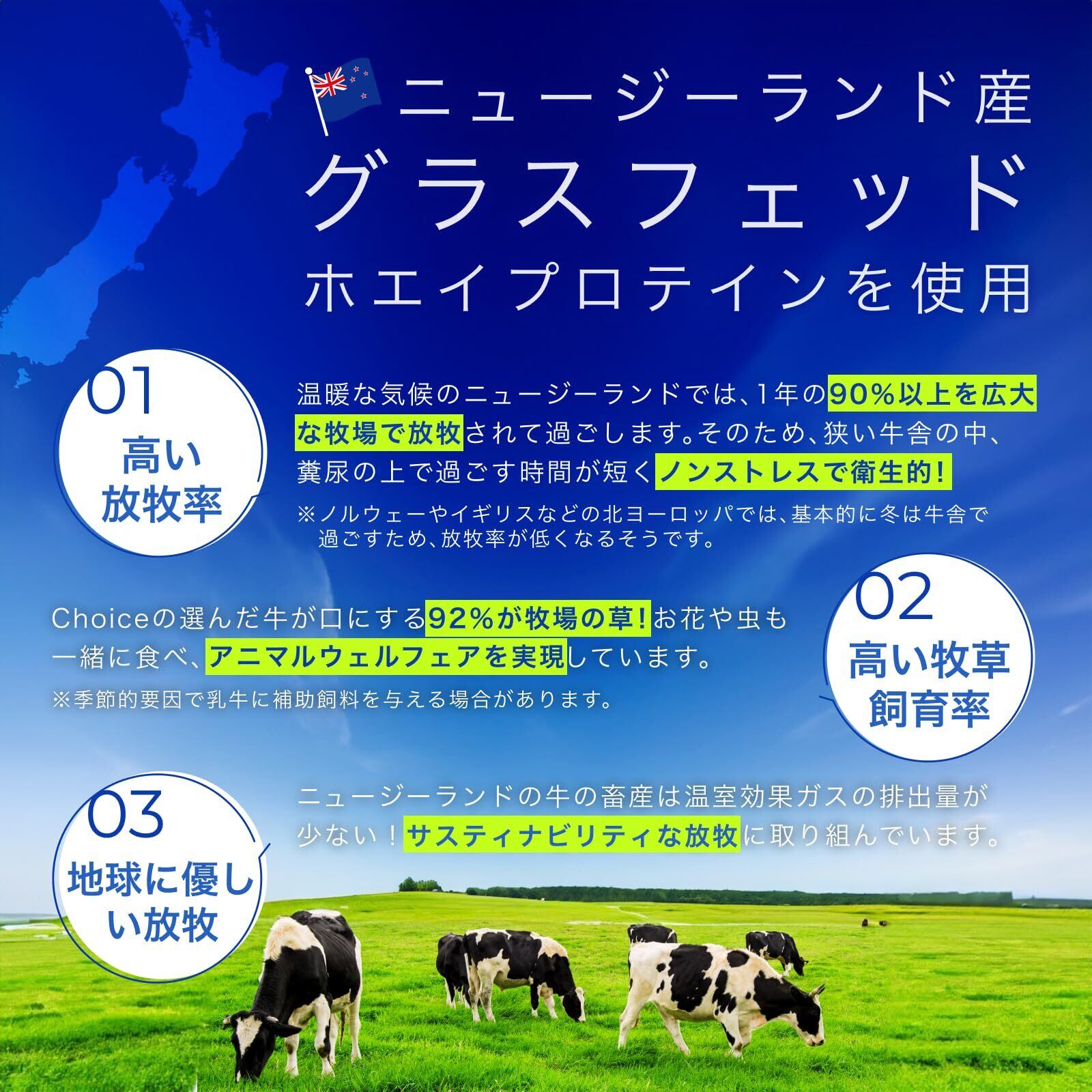 【牧草牛の乳清を使用】広大な自然の中で、信頼できる酪農家の元、成長ホルモン剤を一切投与せず育った牧草牛の乳清を使用しています。