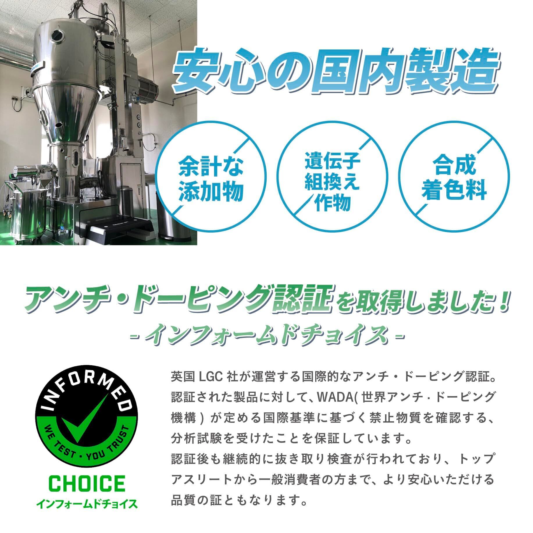 アンチドーピング認証のインフォームドチョイスを取得。トップアスリートから健康を意識する一般消費者の方まで安心して摂取できます。