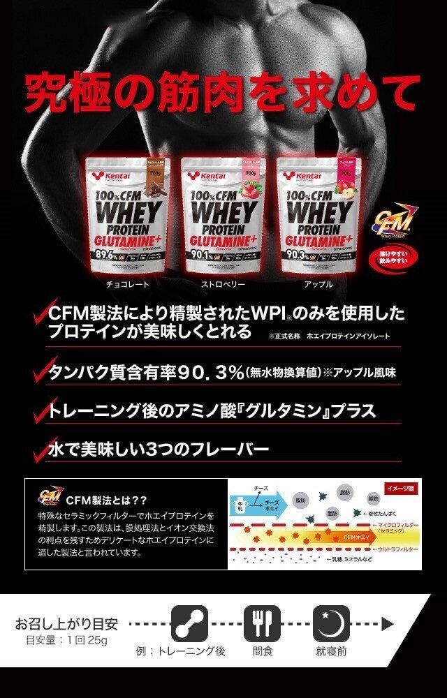 Kentai 100%CFMホエイプロテイン グルタミン+ アップル風味 700g