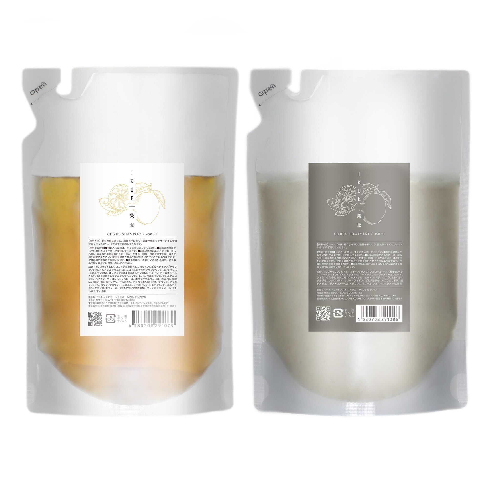 IKUE 幾重 シャンプー&トリートメント シトラス 450ml 詰め替え セット 美容室専売品 サロン専売品